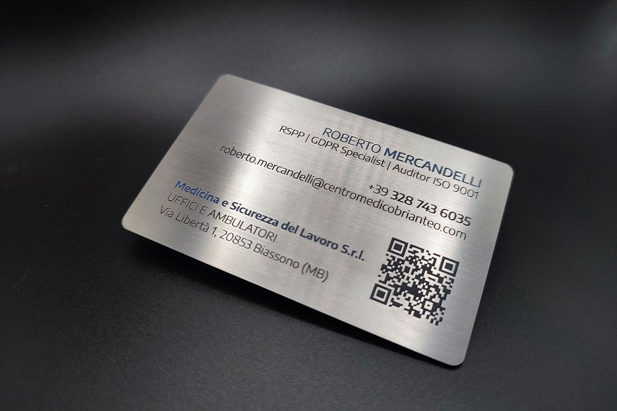 Il risultato è un biglietto da visita solido, resistente e piacevole al tatto, con una finitura elegante e professionale. Il metallo conferisce un impatto visivo immediato e trasmette affidabilità, prestigio e attenzione al dettaglio.